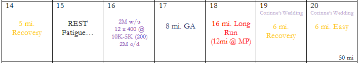 The goal was to put in 16 miles with 12 miles at marathon pace.